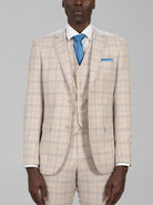 The waist of our pants can be let out up to 1 1/2" or taken in up to 3" by a tailor, who can also taper in the suit and hem the pants to your desired length.