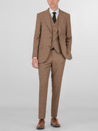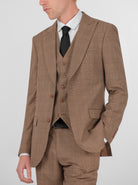 Tan Plaid Three Piece Peak Lapel Suit