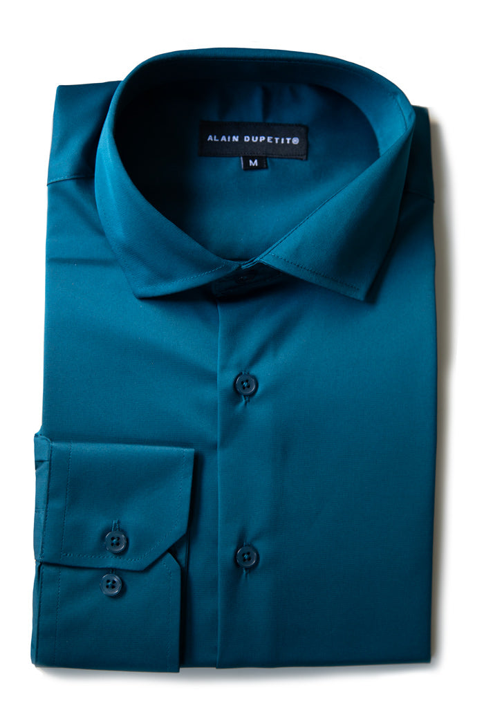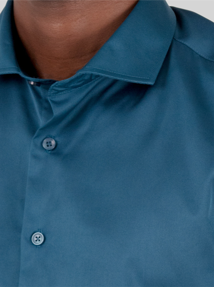 Slim Fit Dress Shirt in Dark Blue Emerald with Stretch