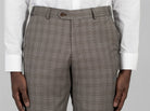 The waist of our pants can be let out up to 1 1/2" or taken in up to 3" by a tailor, who can also taper in the suit and hem the pants to your desired length.