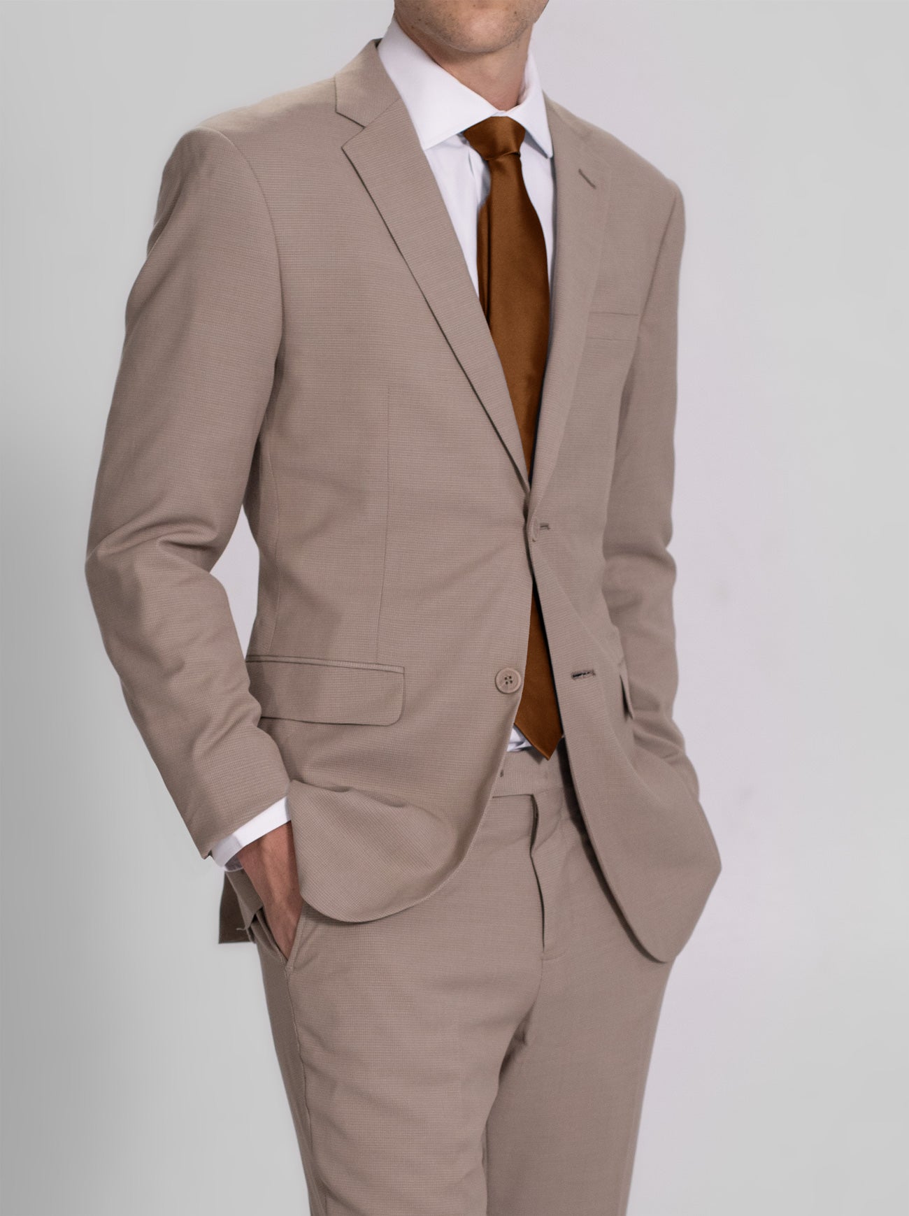 Tan Micro-Check Two Button Peak Lapel Ticket Pocket Suit (Coming Soon)