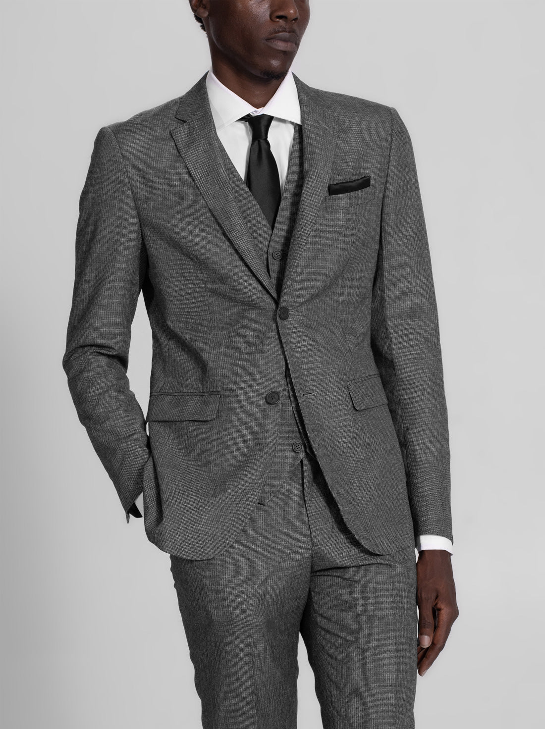 Black & White Micro-Plaid Three Piece Suit (Open Box)