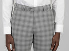 The waist of our pants can be let out up to 1 1/2" or taken in up to 3" by a tailor, who can also taper in the suit and hem the pants to your desired length.