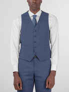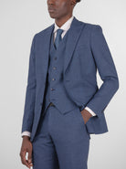 Blue Sharkskin Three Piece Peak Lapel Suit