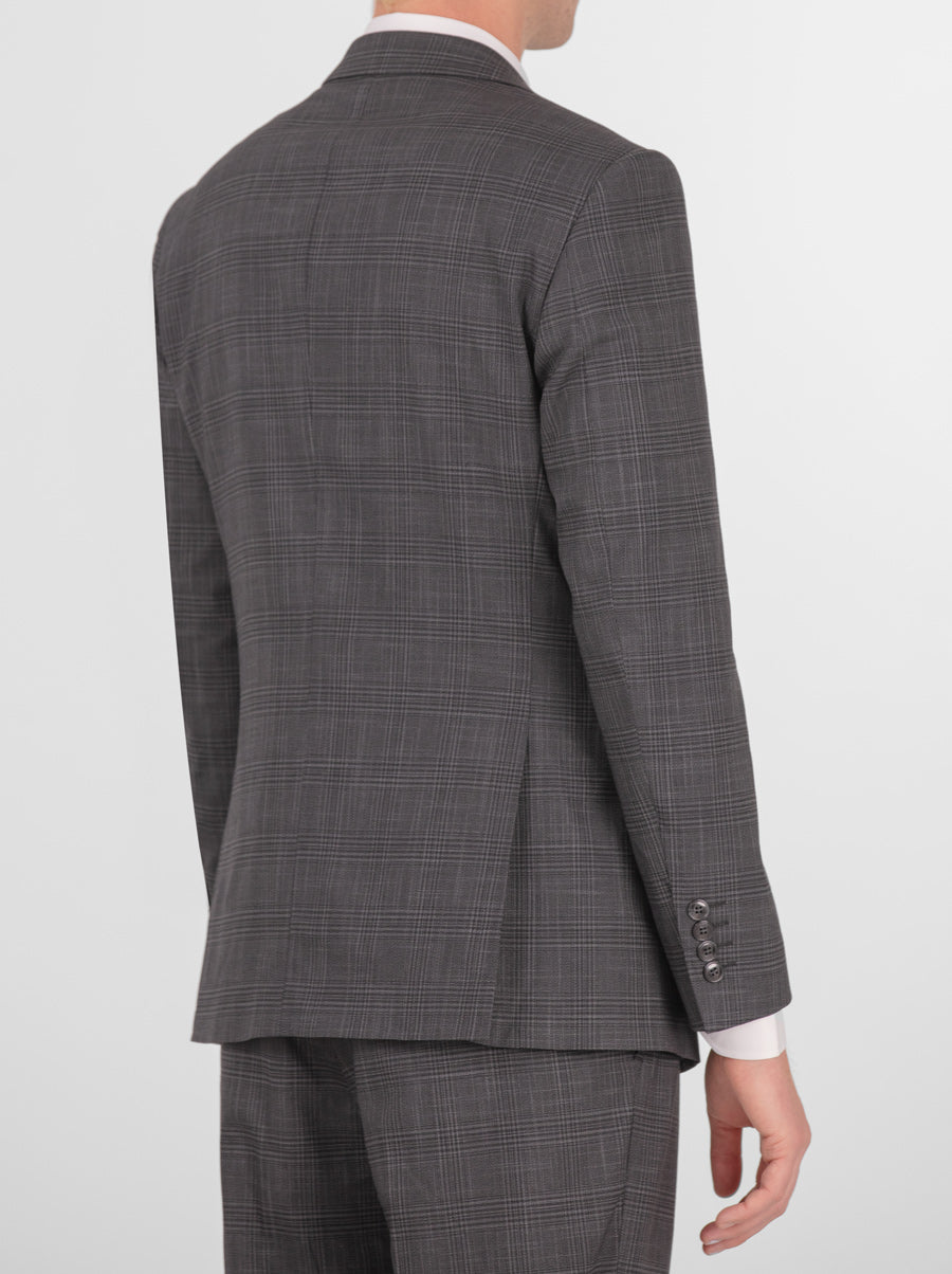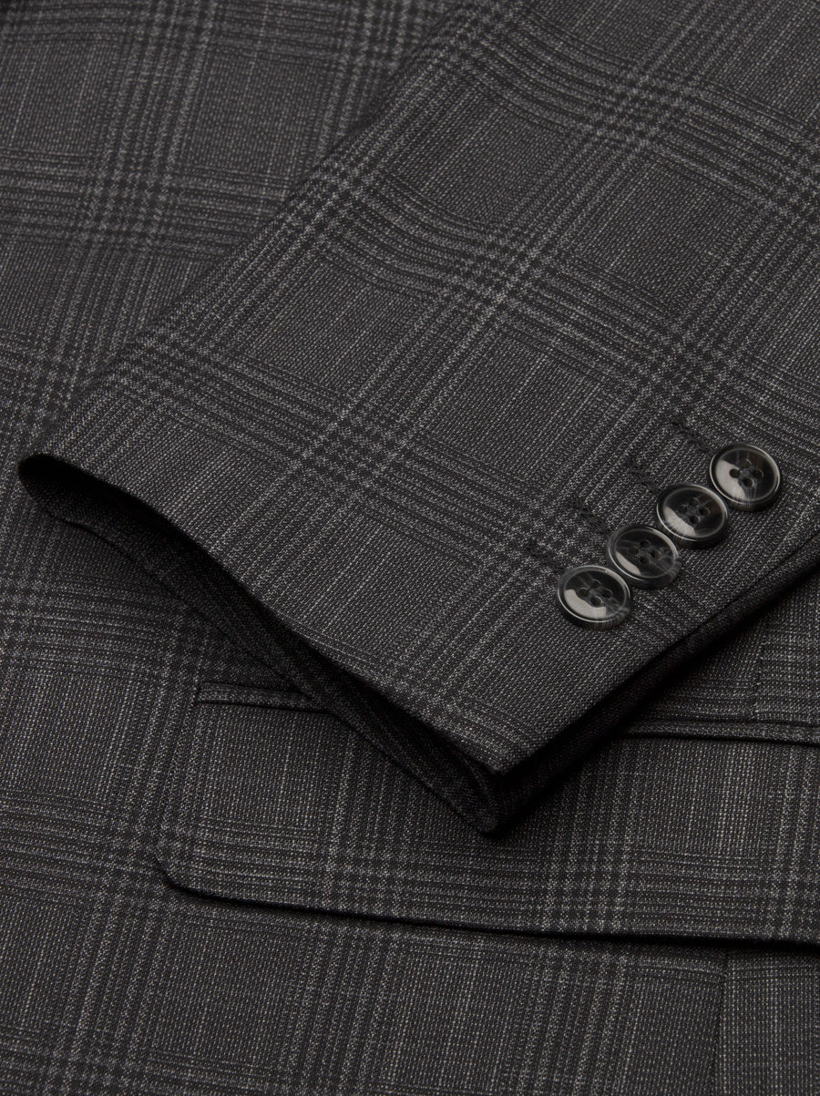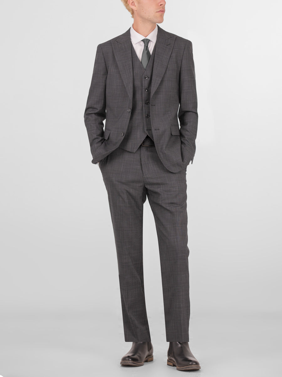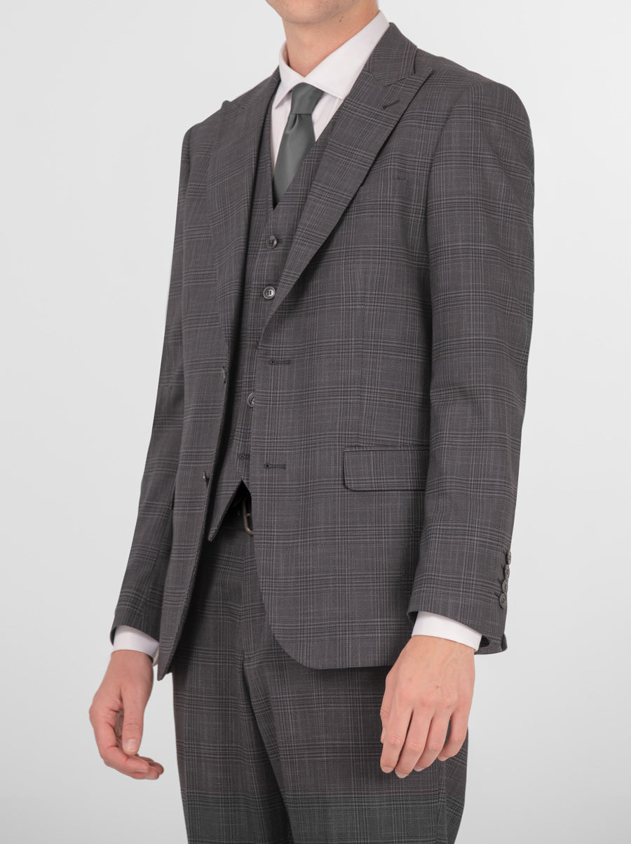 Charcoal Plaid Three Piece Peak Lapel Suit