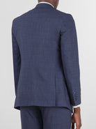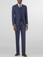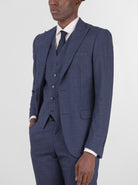 Dark Blue Plaid Three Piece Peak Lapel Suit