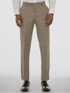 The waist of our pants can be let out up to 1 1/2" or taken in up to 3" by a tailor, who can also taper in the suit and hem the pants to your desired length.