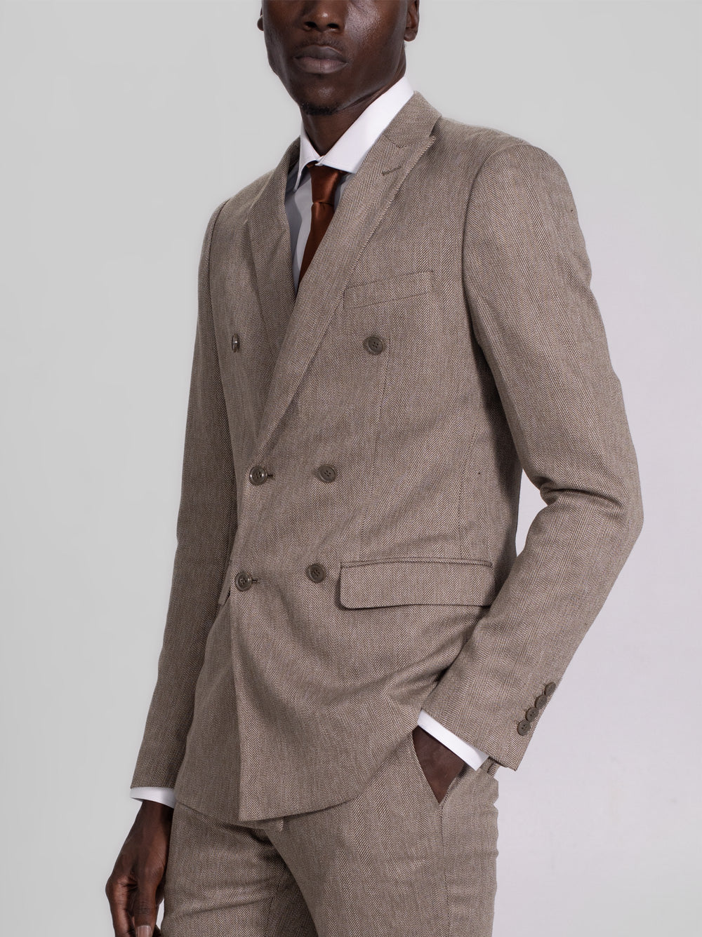 Oak Brown Herringbone Double Breasted Suit (Open Box)